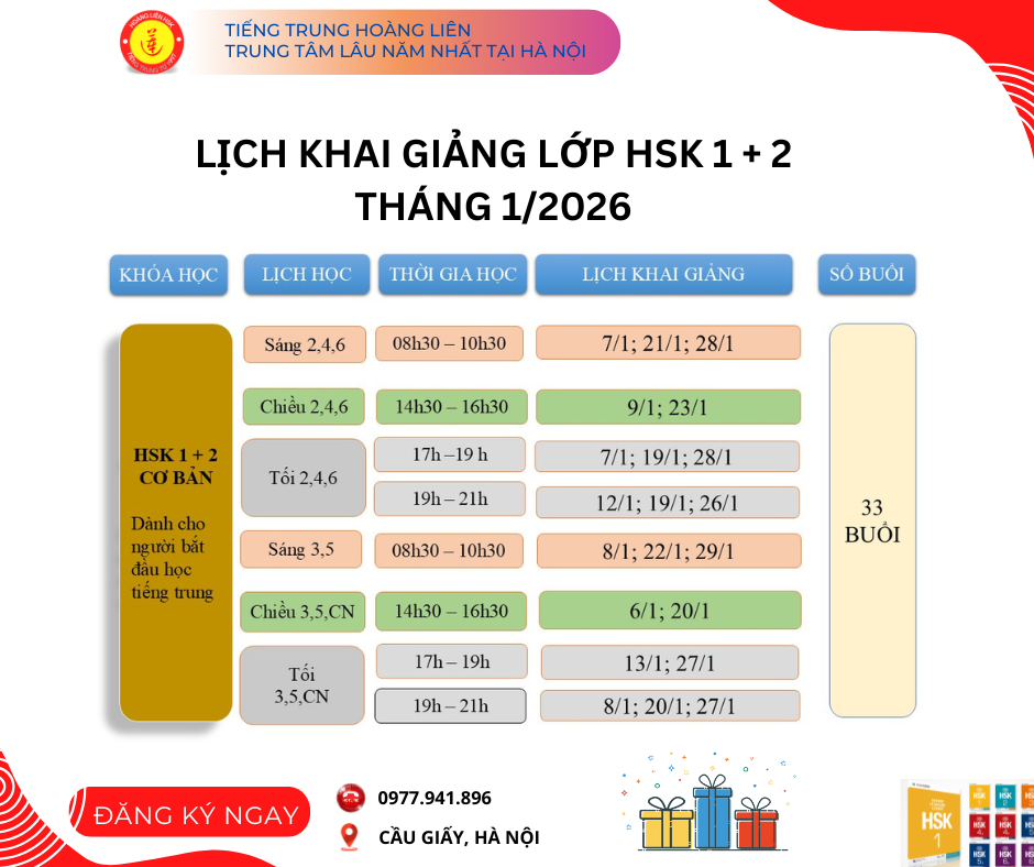 Khai giảng khóa HSK 1+2 THÁNG 1/2026