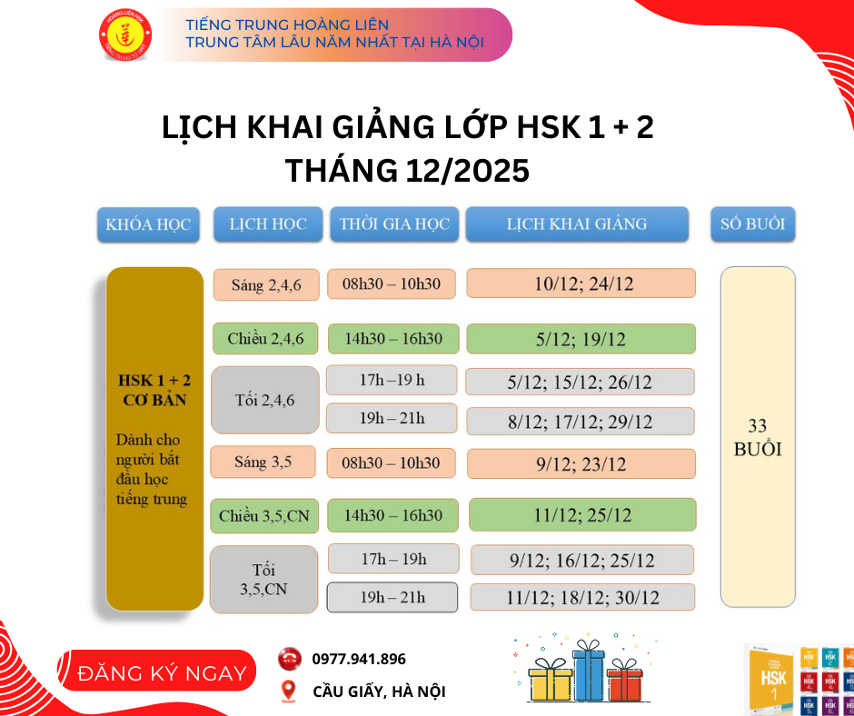 Khai giảng khóa HSK 1+2 THÁNG 12/2025