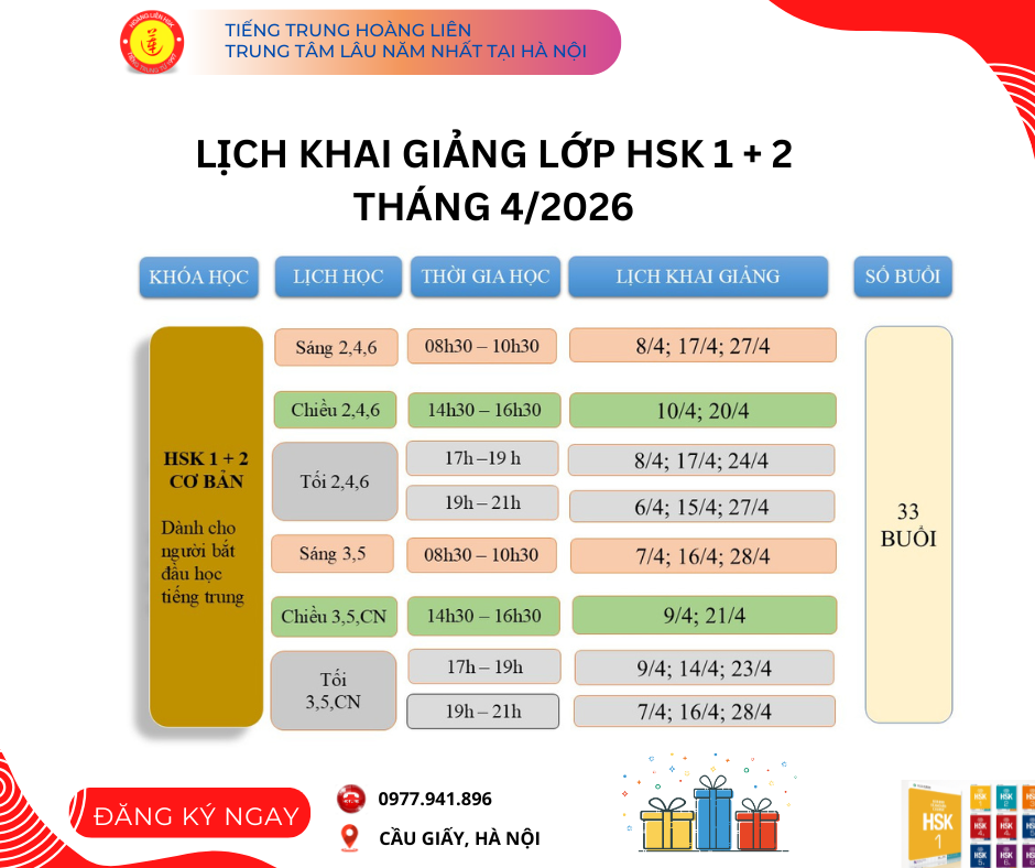 Khai giảng khóa HSK 1+2 THÁNG 4/2026