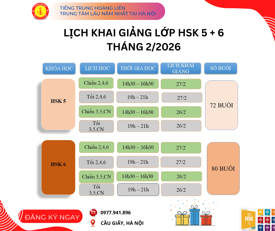 Lịch khai giảng chương trình HSK 5 cho các bạn tham gia đăng ký học tiếng Trung tại Trung tâm tiếng Trung Hoàng Liên như sau để các bạn có thể theo dõi đăng ký học và các bạn gọi điện đến trung tâm để được tư vấn chi tiết hơn về khóa học