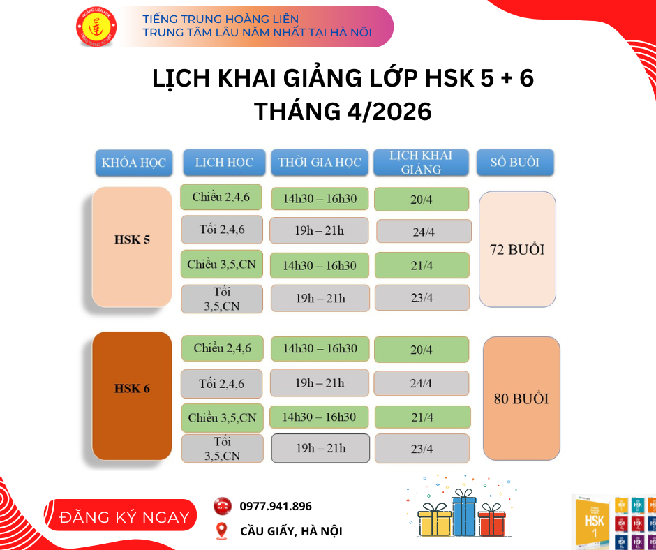 Lịch khai giảng chương trình HSK 5 cho các bạn tham gia đăng ký học tiếng Trung tại Trung tâm tiếng Trung Hoàng Liên như sau để các bạn có thể theo dõi đăng ký học và các bạn gọi điện đến trung tâm để được tư vấn chi tiết hơn về khóa học