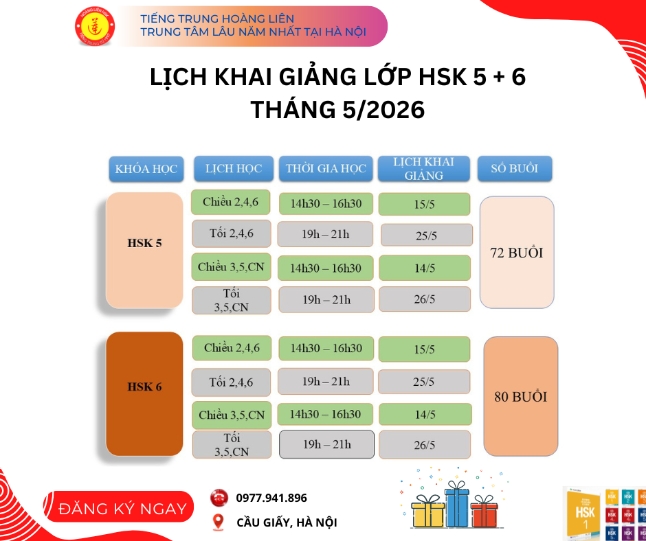 Lịch khai giảng chương trình HSK 5 cho các bạn tham gia đăng ký học tiếng Trung tại Trung tâm tiếng Trung Hoàng Liên như sau để các bạn có thể theo dõi đăng ký học và các bạn gọi điện đến trung tâm để được tư vấn chi tiết hơn về khóa học